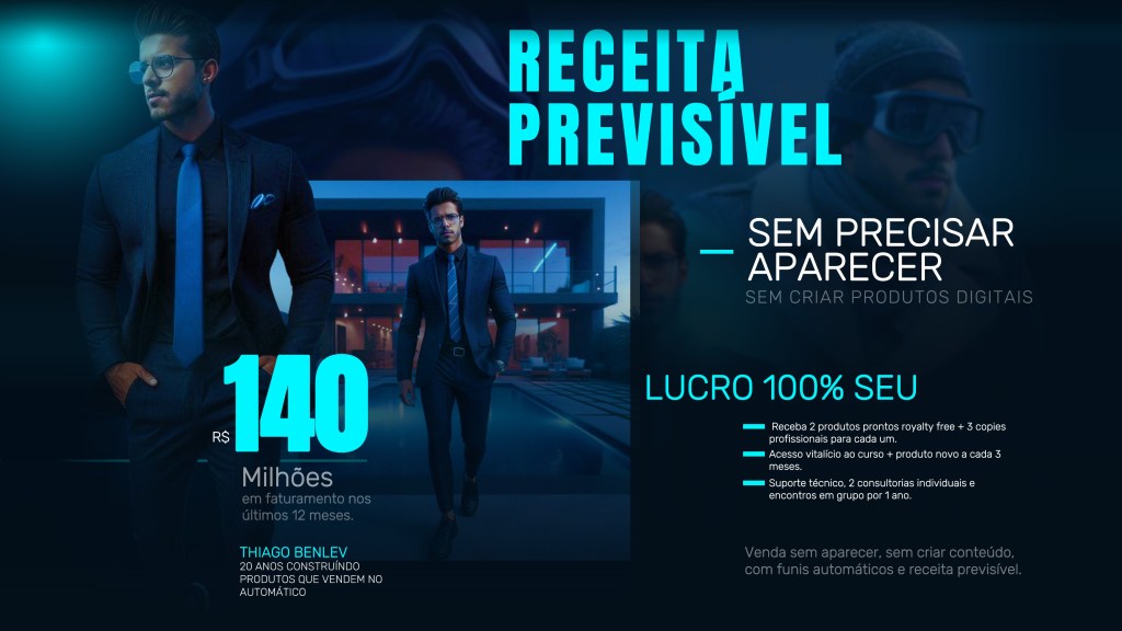 O melhor programa de afiliados do Brasil: Alta comissão, suporte completo e produtos premium Se você já trabalha com marketing de afiliados, sabe que a maioria dos programas no Brasil oferece boas comissões apenas em produtos de ticket baixo. Agora imagine o seguinte: vender um produto de R$ 22 mil… ou até de R$ 72 mil… e receber mais de R$ 14 mil por venda. Parece bom demais pra ser verdade? Não na Benlev. Antes de continuar lendo, inscreva-se em nosso canal para ver mais vídeos sobre esse e outros assuntos. CONSUMA CONTEÚDO DE VALOR Afiliado, pare de vender migalhas…