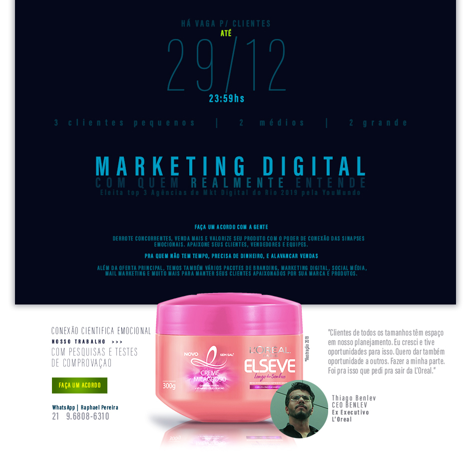 “Aprendi no mundo todo e agora nossa equipe vai trazer ao Brasil resultados de multinacional, de Startup inovadora, de forma escalável e com grande valor. Encantar clientes é uma ciência escalável.” – Thiago CEO da BENLEV